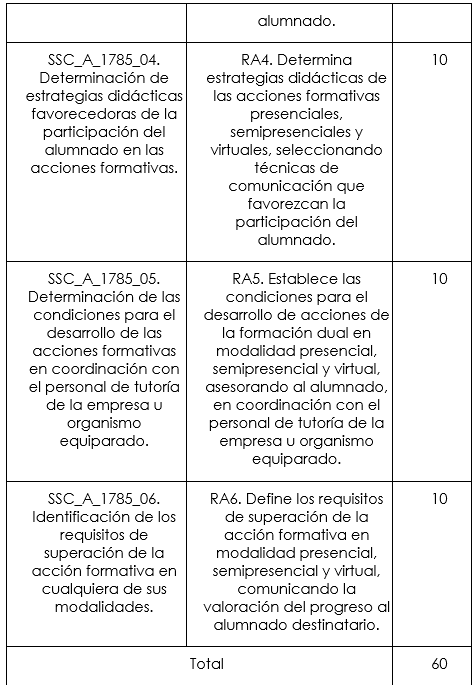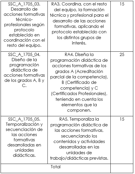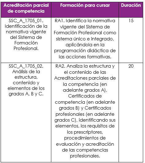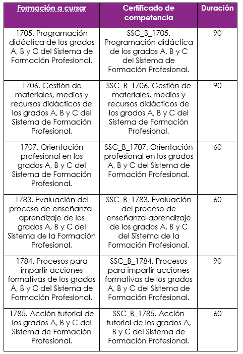 - Procesos para impartir acciones formativas de los grados A, B y C del Sistema de Formación Profesional.