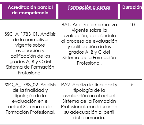 👉 SSC_B_1783. Evaluación del proceso de enseñanza-aprendizaje de los grados A, B y C del Sistema de la Formación Profesional: