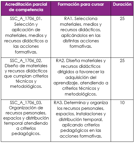 - Gestión de materiales, medios y recursos didácticos de los grados A, B y C del Sistema de Formación Profesional.